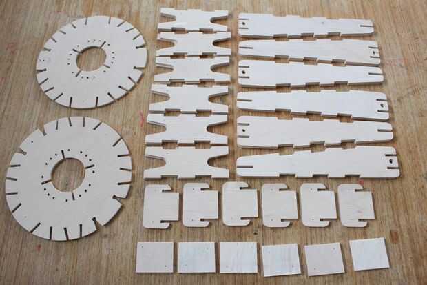 Los brazos se cortan de 3mm 1/8" capas y están diseñados para que los lados y parte superior e inferior se recortan en pares.