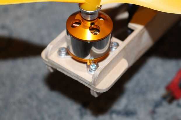 Un largo M3 tornillo y tuerca de fijación se utiliza en cada agujero, y si sólo se utiliza un motor entonces mejor poner una arandela en la parte inferior lateral de madera.