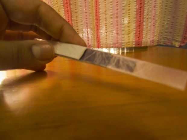 Por otro lado tomar la hoja de sierra para metales. Divida la hoja en la dimensión de la lámina de plástico. Envuélvalo con una cinta de conducto/aislamiento. Abrigo alguna cinta alrededor de la hoja y el delantero plástico de la hoja. Este es el compartimiento de poder deslizarse.