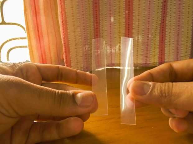 Tome las dos hojas de plástico, cortar en rectángulos de anchura 'a' y 'b' de altura. Donde 'a' y 'b' representa la anchura de la correa de reloj original y el (perímetro de la muñeca – el diámetro de su reloj) / 2 respectivamente.