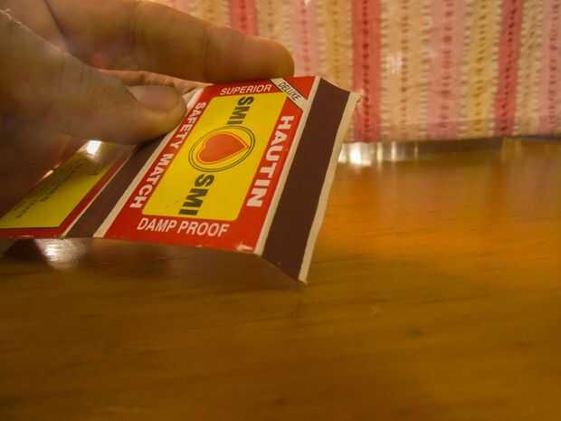 Toma tu caja de cerillas y cortar la superficie llamativa y pégalo a uno de la lámina de plástico.