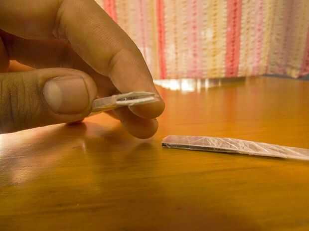 Tomar la correa y corte sección dos veces la longitud de la lámina de plástico. Doblez en el centro, poner su hoja de plástico junto con las herramientas grabadas en la cinta doblada y todo el asunto de la cinta. Esta parte es esencialmente para la lámina de plástico con herramientas se deslice hacia adentro y hacia afuera. PRECAUCIÓN: No pegue el soporte del compartimiento demasiado. Y dejar algo de espacio para sacar la lámina de plástico del soporte del compartimento.
