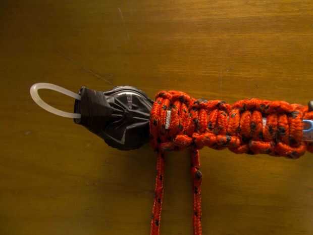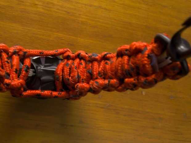 Poner estos compartimientos entre los alambres de nylon en ambos lados. Así que ya sabéis cual compartimiento es en qué lado del reloj. Poner la parte cerrada del compartimiento en (hacia el reloj). Esencialmente debe ser capaz de sacar el plástico junto con las herramientas de la correa sin afectar cualquier otro arreglo. El único problema es que no se puede quitar los partidos sin la apertura de la armadura. Seguir cualquier otros instructables pulsera paracord por ahí para hacer una cobra de armadura (cualquier tejido no es posible).