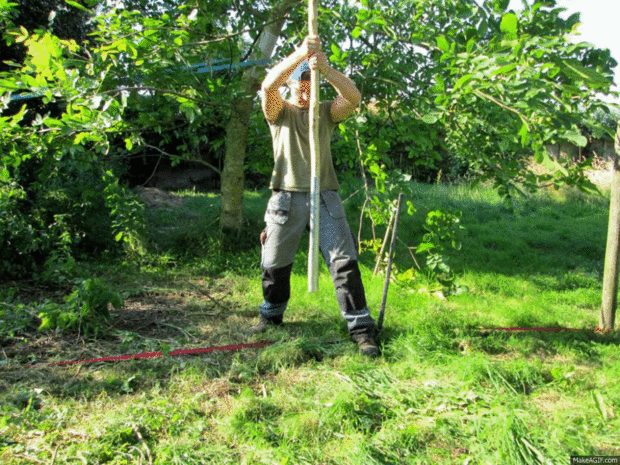 Así que hay que taladrar los agujeros, plantado postes, alambres estirados y guía adjunta. No es gran cosa, te escucho decir 'wazzamatta', ya que estamos viviendo en un mundo donde los ejercicios de suelo (potencia) son tan comunes como los cepillos de dientes y sacacorchos eléctricos.