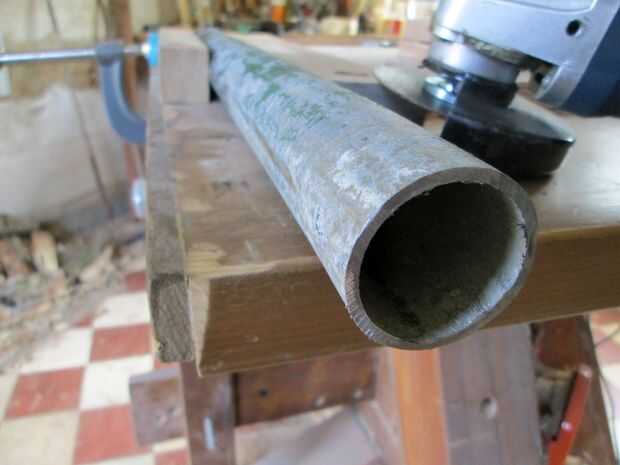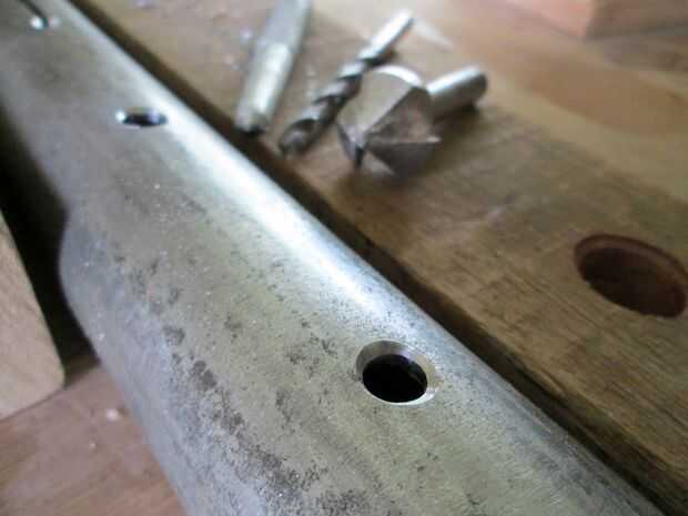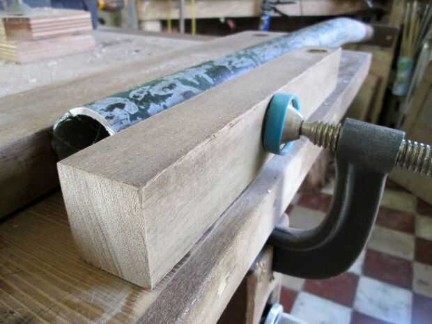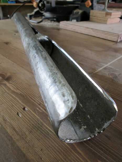 • Haga dos orificios en la mitad ungrooved del tubo, derecho a través de