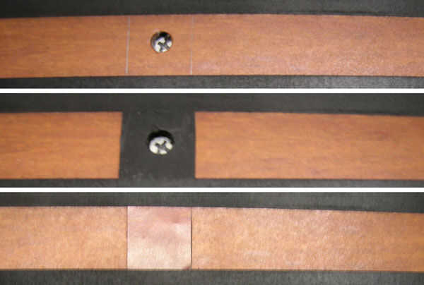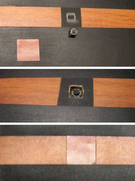 También escondí el botón de reset de suministro de energía debajo de un parche de madera. En el producto terminado, presionar el parche correcto de madera en el guarnecido opera este reset. Es limpio. Es un botón secreto.