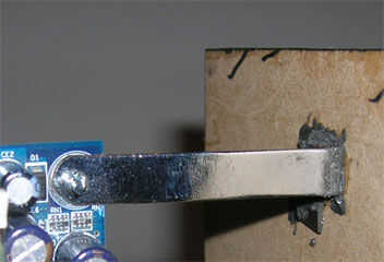 La primera es una 'L' atornillado a un soporte de esquina en el mobo y ajustaron en el panel frontal.