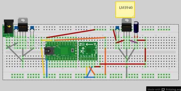 Como fuente de alimentación para ambos el Teensy, Junta Directiva y el poder de la placa de Arduino pueden suministrarse mediante el puerto USB. Como energía externa de la fuente a 12V, 500mA unidad se puede utilizar o si es necesario incluso una batería de 9V también, aunque esto se agota rápidamente. El microcontrolador no se puede conducir directamente por una fuente externa, la fuente de alimentación en cuestión ofrece un voltaje superior a 5V. En este caso, estabilizador diferentes circuitos o componentes pueden utilizarse para garantizar una tensión estable de 5 voltios. El enfoque más sencillo para resolver este problema es el uso de circuitos integrados de estabilizador. Tal es el tipo de L7805 de circuito integrado. Estos son baratos y eficientes. Sin embargo, es importante cuidar también de refrigeración. Estos no son necesarios cuando se utiliza el panel de Arduino, ya que esta dosis incluyen circuito de estabilizador integrado. Sin embargo, uno debe tener cuidado de no superar los 12V (1A) voltaje de entrada, porque a pesar de enfriamiento el circuito integrado puede saltar debido a sobretensión. En el caso del panel Teensy, no existe ningún circuito estabilizador incorporado. En el caso de la Teensy, si uno no quiere que una energía del USB, entonces para la fuente de energía externa el mencionado circuito integrado también es necesario.