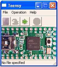 Como primer paso, iniciar el software de Arduino. En primer lugar, creo que es importante tener en cuenta que si se utiliza la plataforma Teensy, primero el controlador IDE TeensyDuino tiene que ser instalado y luego junto al IDE de Arduino. Más información sobre el procedimiento puede encontrarse en el sitio Teensy, bajo "Getting Started". En el caso de la Teensy el panel debe conectarse a un puerto USB disponible, y luego la aplicación cargador Teensy le guiará por los pasos necesarios. En los ajustes recomendados se incluyen un número de ilustraciones. En el caso de Arduino, siguiente conexión al puerto USB, utilizando el software de Arduino abrir archivo de formato ".pde" que debe ser programado en el microcontrolador y, a continuación, utilizando el botón "Subir" el código se transfiere en el microcontrolador.