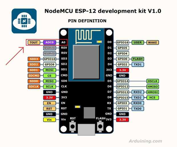 Cuando se utiliza un tablero de Nodemcu, como se muestra en la imagen, un único pin de ADC es availible. Para una pequeña estación meteorológica quisiera leer valores de sensores analógicos múltiples: un sensor de lluvia y un sensor de luz intendsity. Esto lamentablemente no es posible con esta placa.