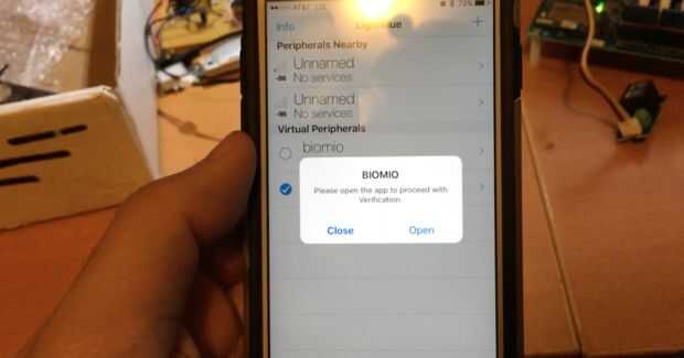 Una vez que la presencia se detecta por medio de Bluetooth LE, Biomio autenticador API se dispara, pidiéndole que abra la aplicación autenticador.