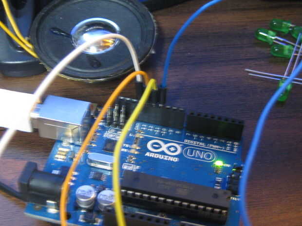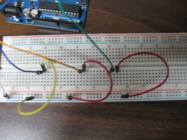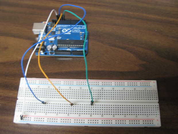 A continuación, conecte un cable de 12 en el Arduino a la fila superior en el protoboard.