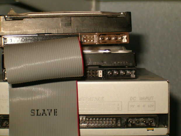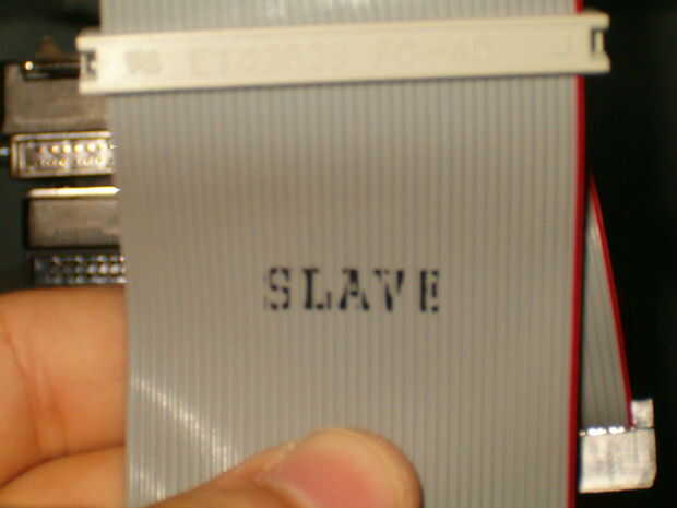 Obtener su IDE cables de la cinta y localice el final que dice el maestro y el algunos donde entre él dice esclavo. algunos punto de cables tienen marcas, por lo que el diagrama se ve así
