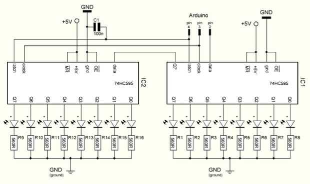 Paso 2: Conexión a shiftRegisters