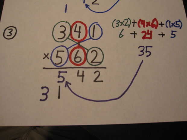 En este punto cabe señalar que los 2 números no necesitan el mismo número de dígitos. Por ejemplo, si un número de 3 dígitos multiplicada por un número de 2 dígitos, sólo tienes que seguir la fórmula para la multiplicación de 3 cifras por 3 cifras y sólo la almohadilla hacia fuera los dígitos faltantes con ceros.