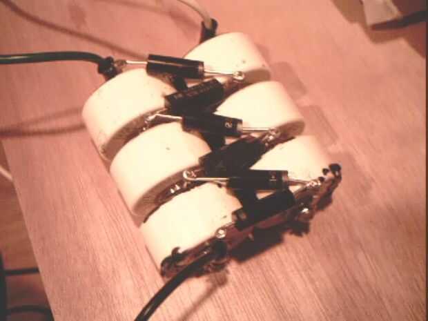A continuación, corte las cabezas de cuatro de los tornillos para hacer los pernos que unen los condensadores.