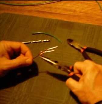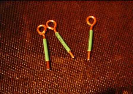 Empezar por corte (7) piezas de latón de calibre 16 o alambre de cobre dos pulgadas de largo. Doble cada pieza alrededor de un pedacito de taladro y forma con un lazo en un extremo.
