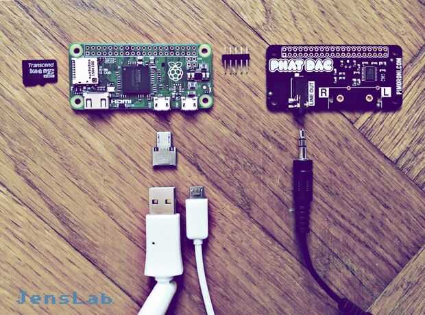 Con el bajo costo cero de Pi de frambuesa y el pHAT Pimoroni DAC ahora puede extender un sistema de sonido de sala de multi existentes para web radio y música local. Con el pHAT CAD total dimensiones pequeñas muy cuidadas y se pueden almacenar en una caja de batería sin uso de una vieja radio.