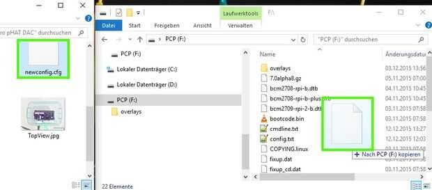 Brenne das Betriebssystem auf die folgende und angepasste Konfigurationsdatei "newconfig.cfg" en das Hauptverzeichnis de SD Karte (mit Win32Diskimager) und kopiere.