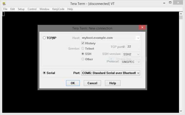 Si usa TeraTerm: Abra el software, haga clic en 'Serial', elija el puerto bluetooth, jugar.