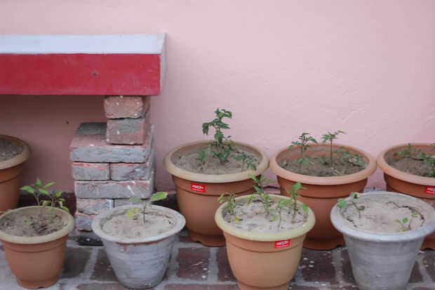 Entonces Armamos un suelo que esté libre de rocas, etc. y que ha sido tratado para eliminar cualquier plaga etc.. En nuestra instalación hemos añadido 50% tierra 50% orgánico estiércol localmente disponible y había mezclado juntos. Las macetas eran pequeños orificios en la parte inferior para que el agua salga y colocamos las rocas escarpadas alrededor de los orificios para que no se bloquean por que suciedad. El suelo estaba entonces en maceta como una mezcla seca y se apartar todos los cacharros.