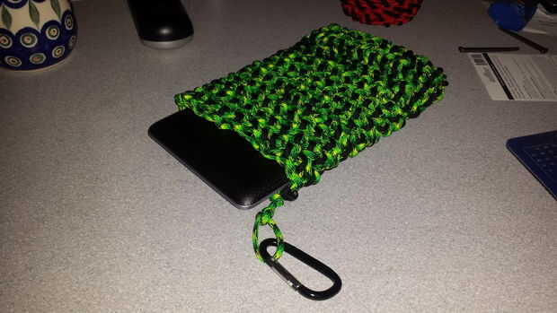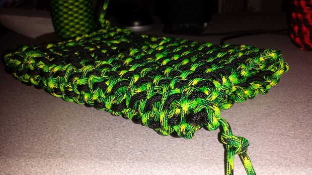 El motivo de que no usar el mismo estilo que el proyecto es porque no pude parece que haz los nudos para alinear correctamente, y creo que la ventaja más grande de mi diseño es que es super sencillo. Cualquiera puede hacerlo y no requiere otra cosa que para cable. Mis instrucciones quedan un poco abiertas terminó por lo que se puede personalizar más a tu estilo en aspecto y construcción. Estoy esperando para experimentar con este diseño como esto era sólo mi primer verdadero intento, hasta ahora sólo hice este manga y una envoltura de botellas de prueba (par de fotos más adelante). Si alguien intenta o tiene alguna sugerencia por favor comentario abajo!