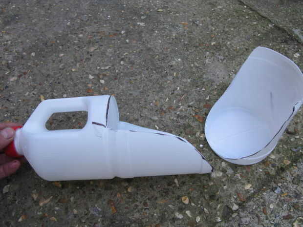 Echa un vistazo en este instructable para saber cómo hacer una catapulta de reciclado.Paso 1:Primero cortar la parte superior de una botella grande. Debe verse así.Paso 2:Cortar 8 líneas hacer un +. Cada corte debe parecerse a esto.Paso 3:Poner las g