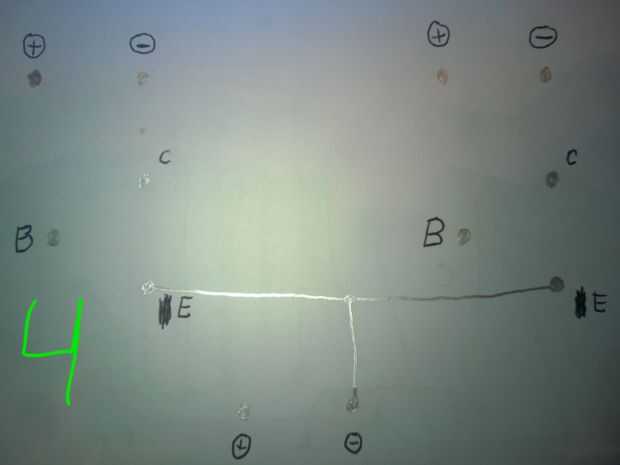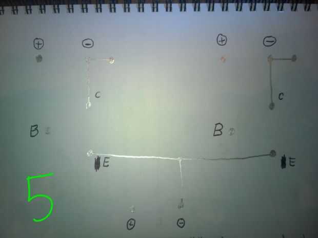 4) dibuja una línea que conecta el transistor dos emisores, así como el terminal negativo de la batería.