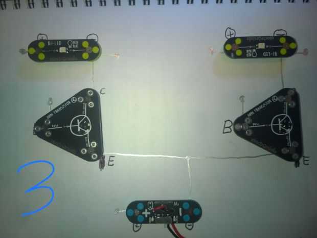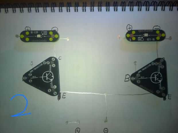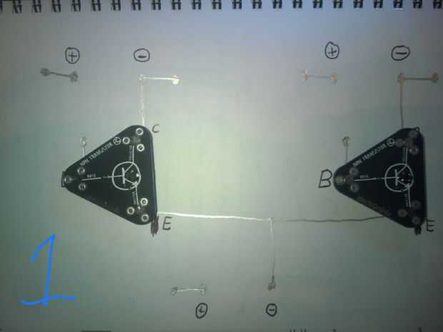 1) Agregue los transistores como se muestra. Asegúrese de que el Alinee el colector, Base y emisor correctamente!