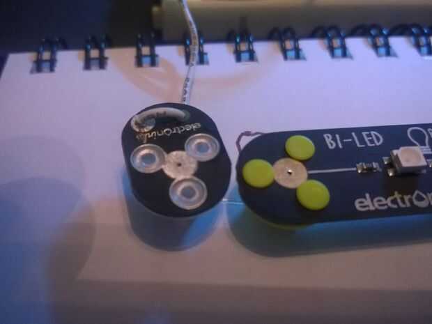 En primer lugar, conecte los cables positivos de los LEDs a las resistencias solo de k (originalmente 470) 10. Usé un cable blanco para el circuito de la izquierda y un cable rojo para el derecho.