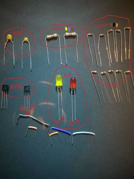 Primero echemos un vistazo a las piezas que necesitaremos para construir el astable multivibrator abordo a un pan.