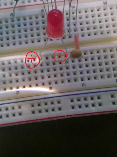 Insertar un LED en la placa. Es importante que la polaridad correcta!