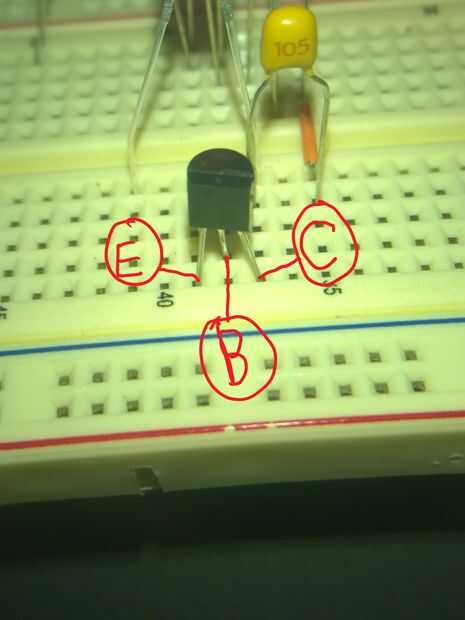 Ahora tenemos que introducir uno de los transistores de NPN. Tome nota de la posición del colector, Base y emisor.