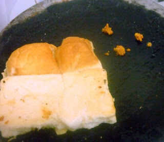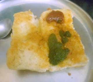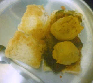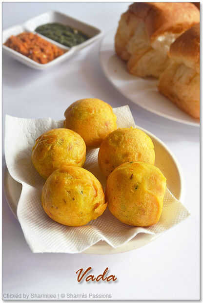 Calentar un tawa, engrasar con mantequilla. Poner la salsa picante de maní ajo, extender la raja bun Pav sobre él y propagación bien para que el chutney se extiende uniformemente. Eliminar, extender una cucharada de Chutney de Tamarindo, Chutney de menta cilantro en capa superior e inferior. Coloque una bola de patata en el bollo y doblez, presionando suavemente. Sirven mientras que la bola de la patata aún está caliente.