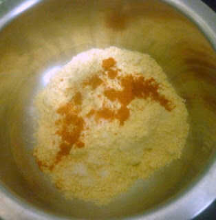 Tome la besan añadir polvo de Chile rojo y sal. Lentamente agregue agua y hacer una masa suave. Manténgalo a un lado.