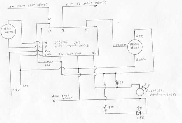 Alambre, según el esquema. Usé una de 12 voltios, fuente de alimentación de 5 amperios, pero eso es más amperios que se necesitan (500 mA probablemente trabajaría).