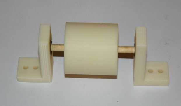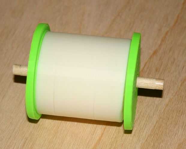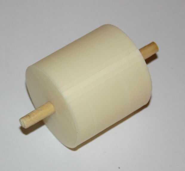 Empezar por hacer un "rodillo", 2 pulgadas de ancho con un diámetro de 2 pulgadas. Utilicé una varilla de madera de diámetro de 1/4 de pulgada para el árbol.