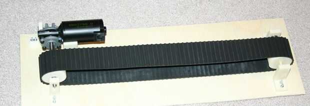 Poner la correa en el rodillo del motor no antes de fijar el rodillo a la base.