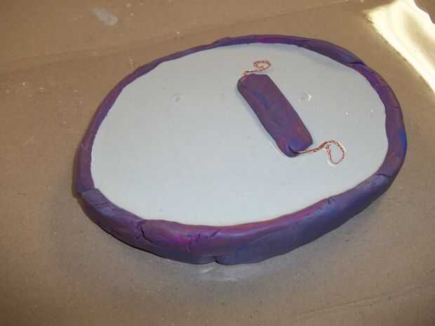- Deje caer el conjunto de suspensión en el yeso hacia la parte superior y centrado. Presione los cables que se extiende fuera de la arcilla en el yeso. De yapa, pulse otra vez.