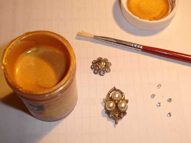 No es muy brillante por lo que he pintado con pintura acrílica de oro. Usted también tendrá un casquillo del grano para hacer la unión entre el pendiente o colgante y la parte superior la mitad del huevo.
