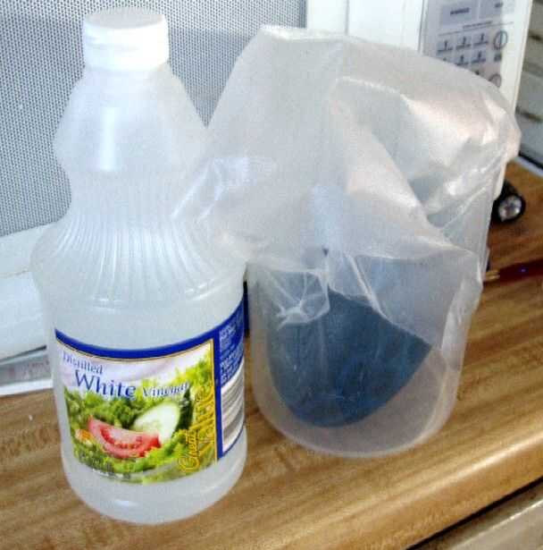 Entonces fui a la tienda y compró una botella de vinagre blanco. Una vez leí que el vinagre se vuelve menos ácido el más largo se almacena, por lo que, a pesar de que me di cuenta que lo que está en los estantes de las tiendas puede han sentado allí durante un año bueno, ya sabía que lo que estaba debajo de mi fregadero ha sentado allí por al menos dos, además el tiempo pasó en la tienda. Tan fresco fue definitivamente mejor.