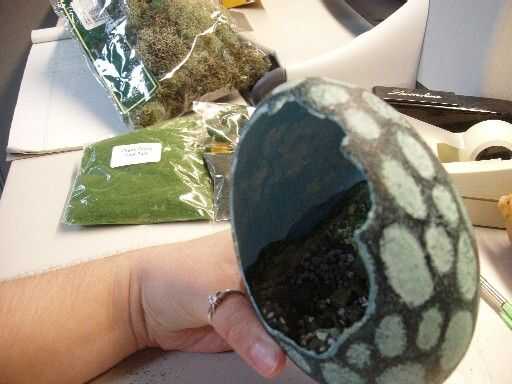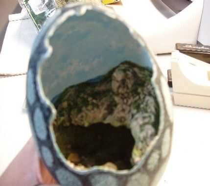 También pinté las rocas en la parte inferior. Que la parte fue realmente fácil: algunos barro verdoso-marrón. Después de secado, añadí talud más pintado en la parte inferior y a los lados, para que encajen en el paisaje.