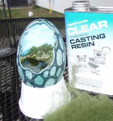 He utilizado tinte un poco (esto fue producido por la misma empresa, específicamente para el uso con la resina. No usar colorante--probablemente no mezclar de manera uniforme y podría terminar mirando terrible) para teñir el verde amarillento de agua. Cuando derramé una resina cantidad saludable en la taza de mezcla vi que tiene un poco de un tinte amarillo ya, así que no sé si debería haber molestado a teñirlo. (No, no todas las resinas tienen un tinte amarillo, tengo otra clase en un cajón, un epóxido, frente a una especie de catalizador activado, como éste, y es claro como el cristal). Mi última baza para el ojo vino en forma de fibra del follaje. También vino con el kit de diorama. Lo que se sugieren que usarla incluso no parecía convincente en sus cuadros, que es malo. Honestamente no tengo idea cómo uno podría posiblemente utilizar que para simular la vegetación terrestre. De vegetación acuática, por otro lado, fue lo que ordenó el médico.