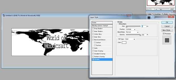 Luego he escrito las palabras 'Mundo de Woodcraft' con esa fantástica fuente de creativemarket.com - es la fuente que se llama pincel Serif - Collin.