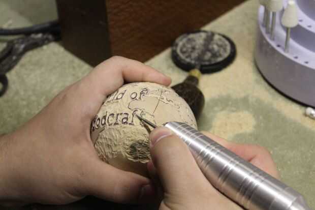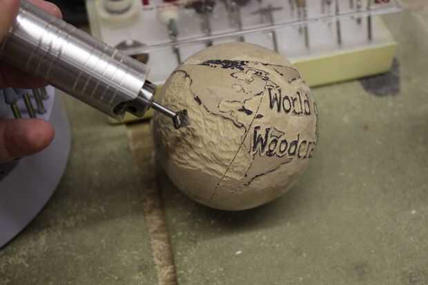 Tengo un kit que me estoy poniendo a los apretones con de talla de madera hermosa de Foredom. Encontré unas fresas diferentes trabajados muy bien para dar precisión y detalle para las letras y masa de la tierra así como la textura de los mares.