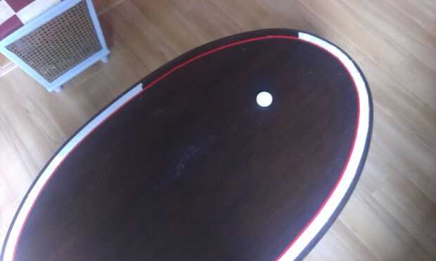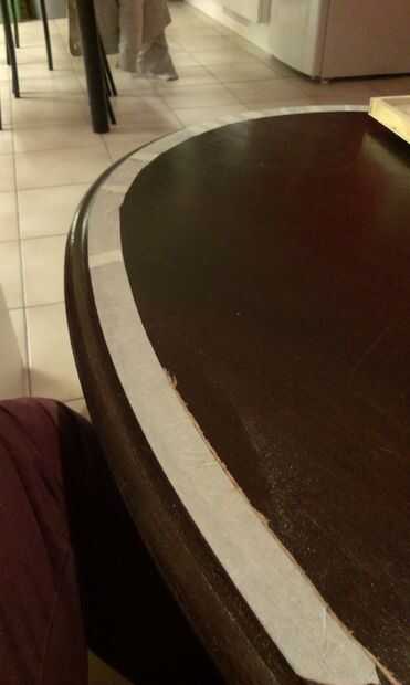 Usé cinta de pintor y cinta aislante para delinear las líneas decorational en el lado de la mesa