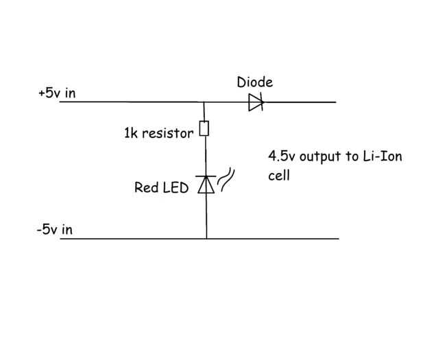 Usé un diodo, una resistencia y un LED para el circuito del cargador. El LED se encenderá cuando la batería se está cargando. En el circuito de la marca LED ha invertido la polaridad, lo siento. Voy a intentar corregirlo pronto.