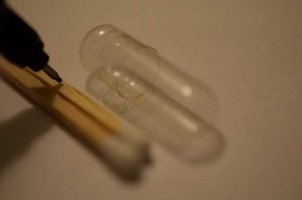 Corte acerca de los partidos a la longitud de su cápsula, se puede utilizar sin embargo muchos que cabe, he utilizado dos. Además cortar el delantero de la caja y hasta la longitud de la cápsula. Asegúrese de que a los partidos de la división cuando los partidos de corte. Coloqué a los partidos en la cápsula con una hacia cada sentido.