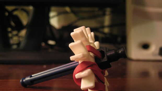 Esta es la más pequeña pistola KVG jamás hecha!Paso 1: construir el diseño CAD Construir el diseño Cad, rap de una banda elástica alrededor de él - entonces estirar detrás con una barra gris o de espalda (como se muestra) - y fuego!