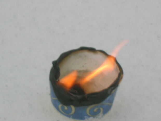 saque el arrancador del fuego, quitar la parte superior colocar bajo la Copa de la parte inferior como se muestra y colocarlo debajo de la base de tu fuego o sólo utilizarlo hacia fuera en el abierto para verlo. Para aquellos de ustedes que trajo el alcohol, verter un poco sobre la parte superior de la misma. Como se quema te darás cuenta que la taza de papel de la cáscara lo primero que debe ir, que hace los redondos de algodón barriles coger, que queman a un ritmo mucho más lento. Sólo le prendieron fuego y quemaduras por un largo tiempo, garantizado para encender cualquier fuego.